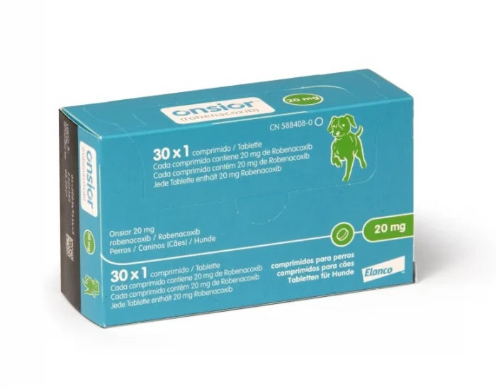 ONSIOR contient du robenacoxib, pour le traitement de la douleur et de l'inflammation dans l'arthrose chronique chez le chien. Les comprimés d'Onsior sont aromatisés et sont ingérés volontairement par la plupart des chiens, ils ne doivent pas être cassés ou écrasés.