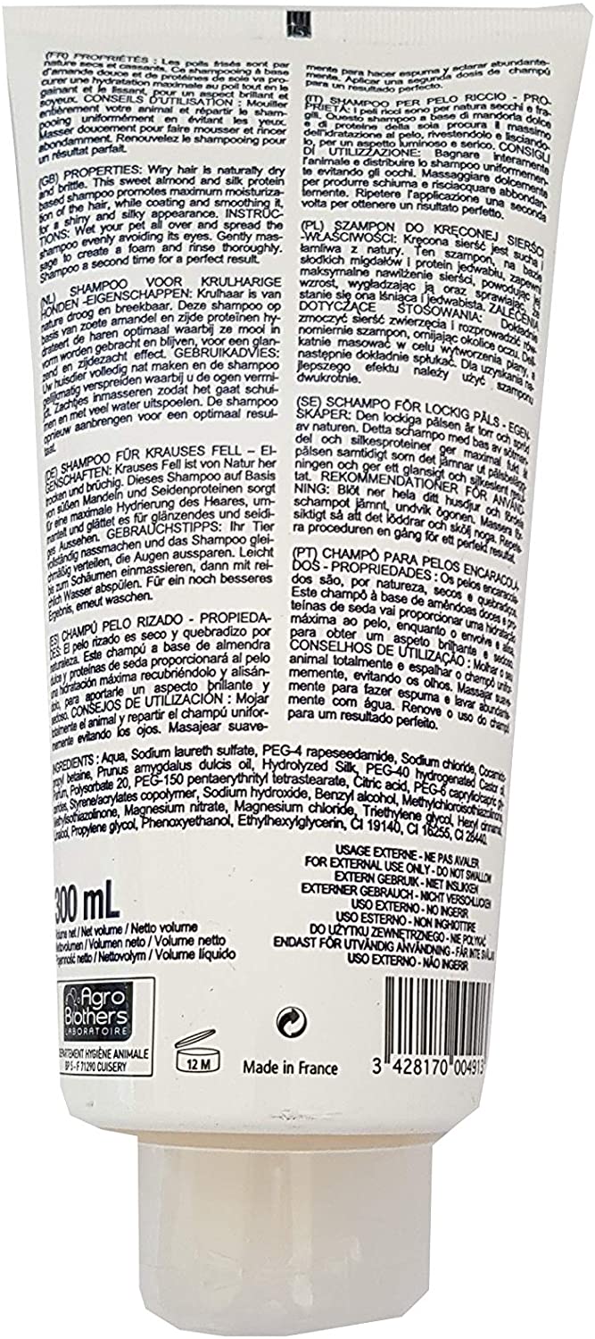 This vétocanis Shampoo is for dogs with curly fur, intensively moisturises and enhances the coat of your pet. Curly hair are, by their nature dry and brittle hair. This shampoo with sweet almond and silk proteins will provide optimum hydration to hair while slimming and smoothing, for a shining and silky straight.