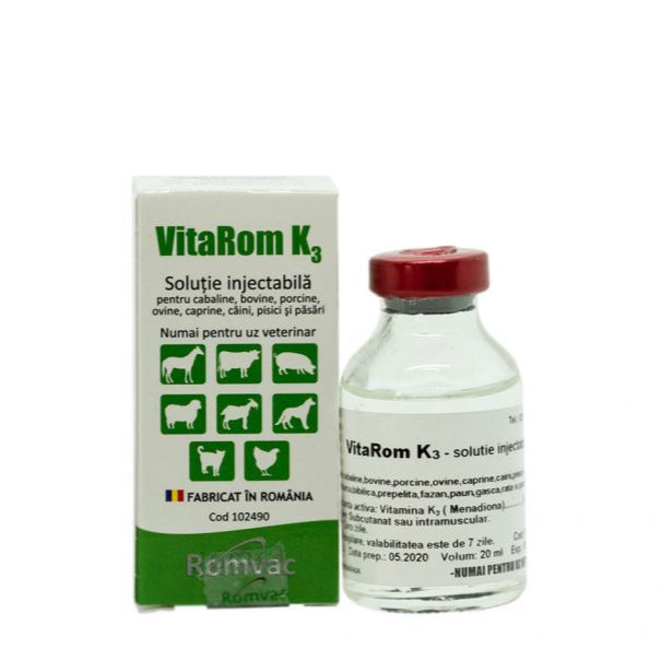 VITAROM K3 INJ 20ML // Horses, cattle, pigs, sheep, goats, dogs, cats and birds / Cavalli, bovini, suini, pecore, capre, cani, gatti e uccelli